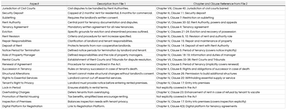 One of the most contentious issues in rental agreements has been the amount of security deposit required. The Act limits security deposits to two months’ rent for residential properties and six months’ rent for commercial properties, providing much-needed relief to tenants and establishing a standardised approach .